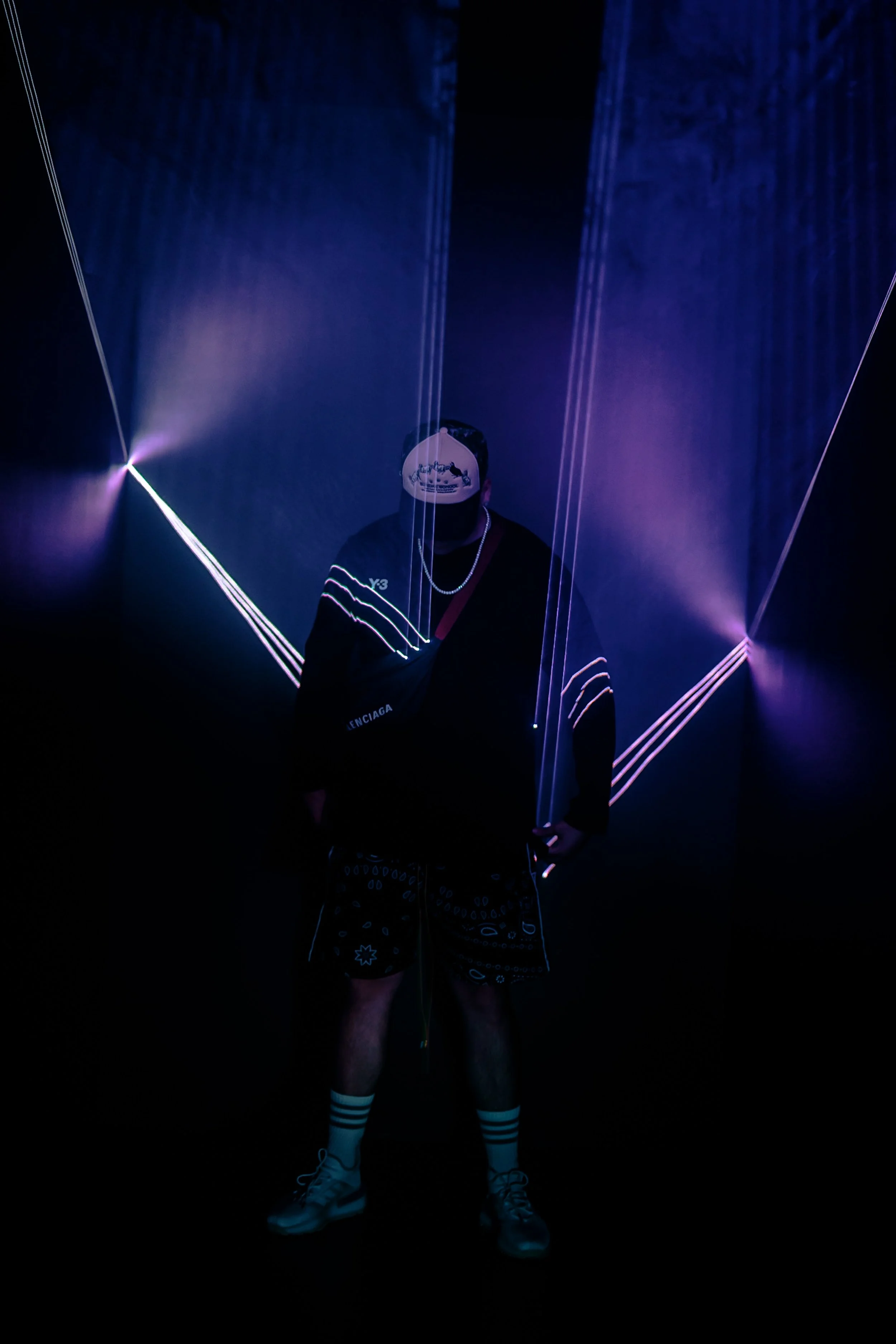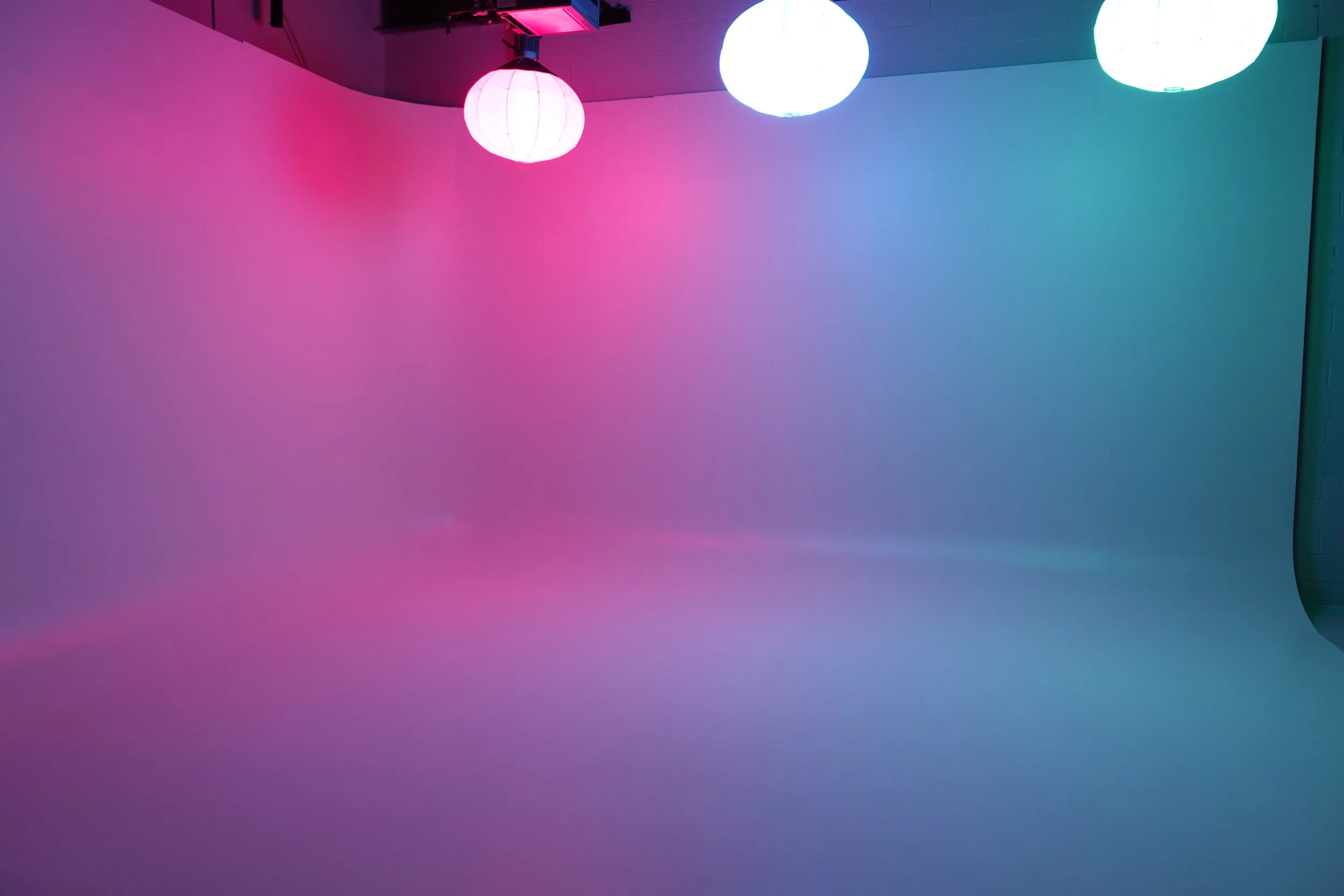 Cyc wall - (20x27) 3 Amaran 150c RGB ceiling mount lighting fitted with 33.5in lantern soft box
